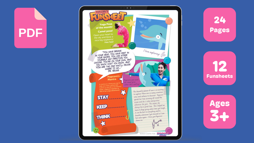 12 x 2-page PDFs with lots of craft, games and discussions about life and mindfulness - linked to Cosmic Kids yoga adventures.
